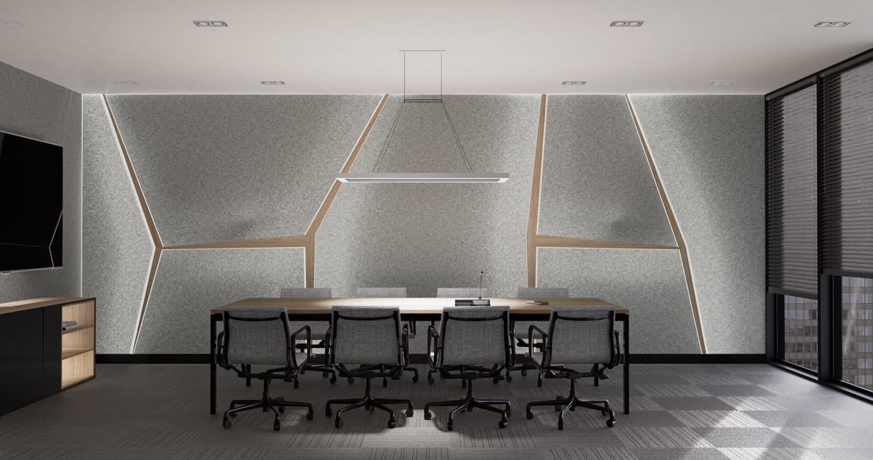 Tapeta akustyczna to miły w dotyku, wysokiej jakości filc wełniany, pochłaniający dźwięk. Wszędzie tam, gdzie duże powierzchnie wzmagają echo – klatka schodowa, korytarz, otwarty ku górze salon – akustyczna tapeta Fluffo zdziała cuda, niwelując pogłos. Dobre pochłanianie dźwięków o wysokiej częstotliwości ogranicza rozprzestrzenianie się szczególnie uciążliwych, nieprzyjemnych tonów.