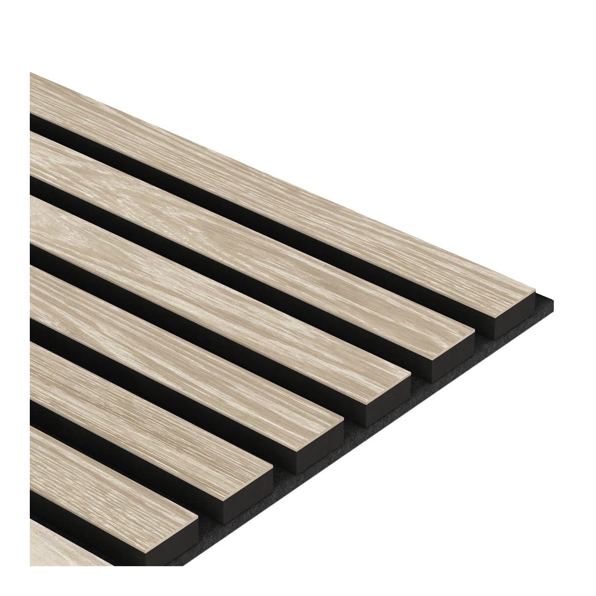 Oferowane przez nas lamele wykończone fornirem naturalnym przymocowane są do czarnego filcu akustycznego o grubości 7 mm i dużej gęstości, który skutecznie wygłusza przestrzeń.