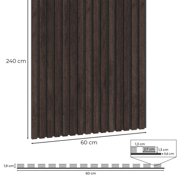 Oferowane przez nas lamele wykończone fornirem naturalnym przymocowane są do czarnego filcu akustycznego o grubości 7 mm i dużej gęstości, który skutecznie wygłusza przestrzeń.