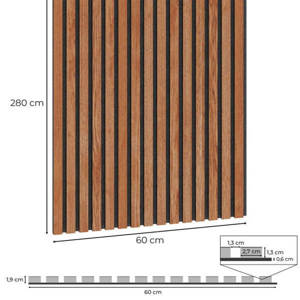 60x280 cm | Fornirowany panel akustyczny 3D Sapelli - lamele akustyczne