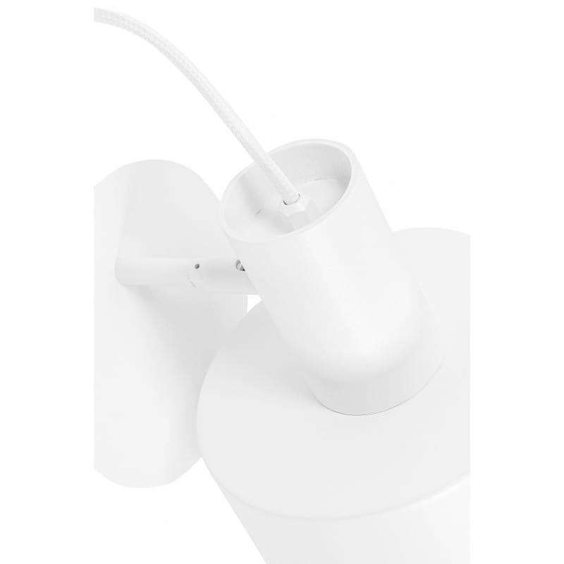 kinkiet z możliwością regulacji kierunku świecenia • metalowy klosz i maskownica sufitowa lakierowane w kolorze czarnym lub białym strukturalnym • oplot czarny lub biały.