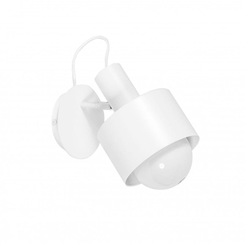 kinkiet z możliwością regulacji kierunku świecenia • metalowy klosz i maskownica sufitowa lakierowane w kolorze czarnym lub białym strukturalnym • oplot czarny lub biały • w zestawie nie ma żarówki • max. 15W