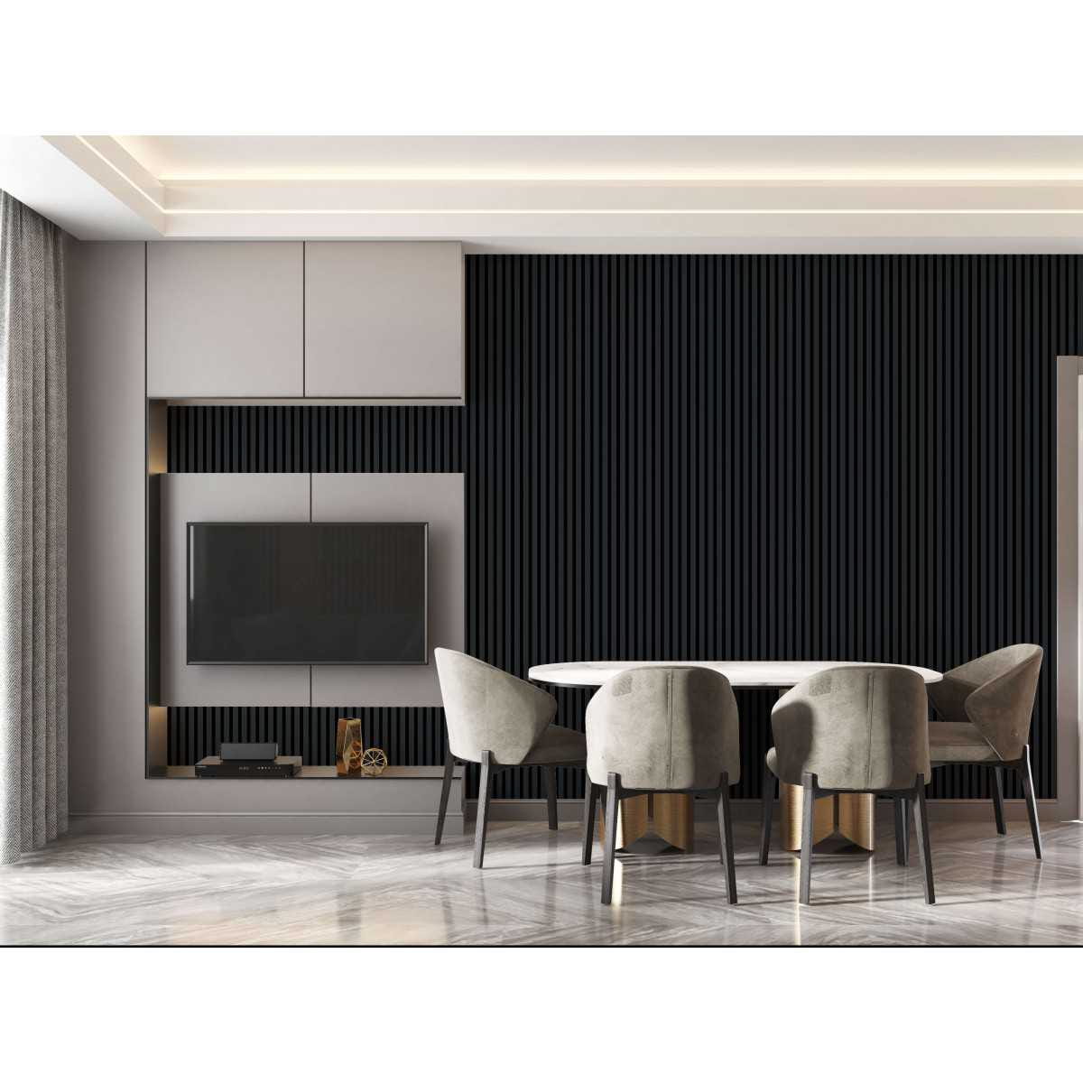 Lamele z kolekcji mini w kolorze antracytowym, a więc najciemniejszym odcieniu szarości, cieszą się coraz większą popularnością. Lamele mini posiadają wymiary zaledwie 1,6 cm szerokości i 3 cm głębokości, dzięki czemu idealnie pasują do nowoczesnych i minimalistycznych wnętrz. Mogą stanowić zarówno główny element dekoracyjny, ale nic nie stoi na przeszkodzie, aby były jedynie oryginalnym dodatkiem. Lamele antracytowe można zestawić z ciemnymi lub jasnymi kolorami. Dostępne w naszej ofercie lamele posiadają czterostronny laminat, co ułatwia ich montaż, który można wykonać samodzielnie, przyklejając lamele dowolnym bokiem do ściany czy sufitu.