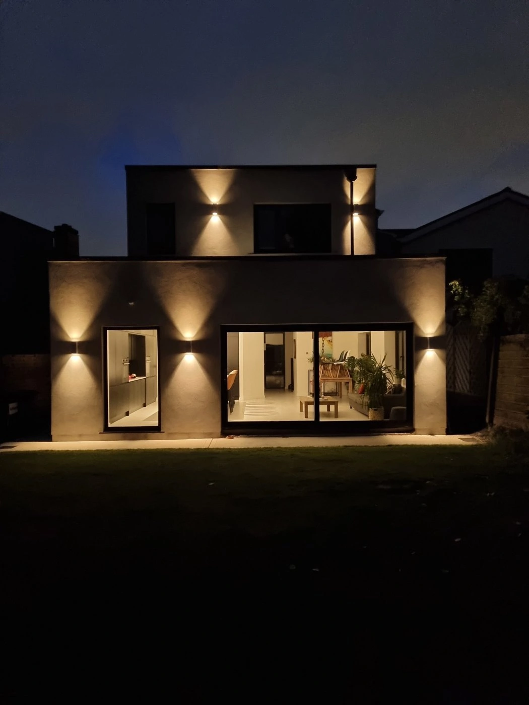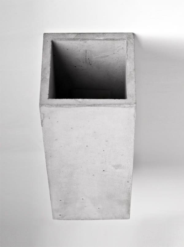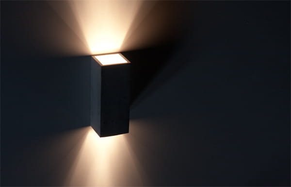 Nowoczesny, industrialny kinkiet ręcznie wykonany z betonu przeznaczony do użytku zewnętrznego z certyfikatem IP65. Światło wydostające się z betonowej obudowy zapewnia nastrojowe i dyskretne oświetlenie. Tym samym kinkiet świetnie nadaje się do oświetlenia elewacji zewnętrznych budynków i domów jednorodzinnych.