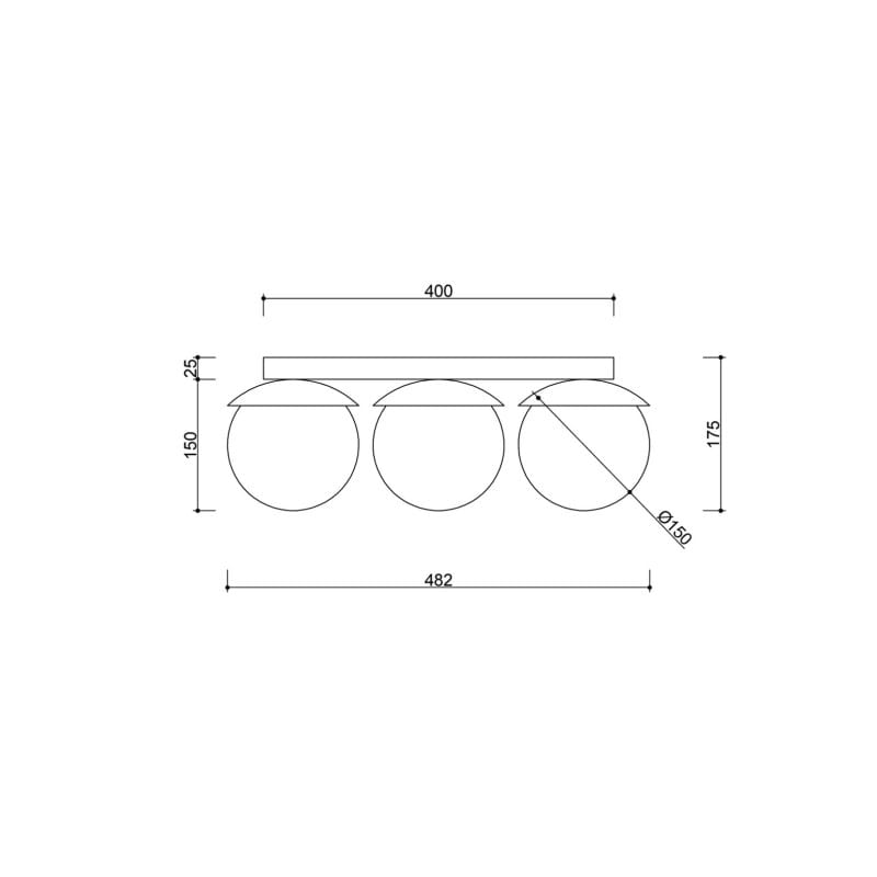 • lampa sufitowa / plafon • wysokość 16,5cm • trzy szklane klosze w kolorze białym matowym • maskownica sufitowa lakierowana w kolorze czarnym strukturalnym • przewód dwużyłowy 2 X 0.75mm2 • max. 3 x 12W