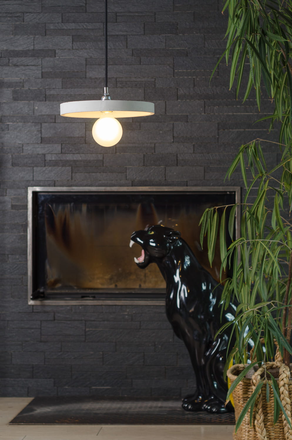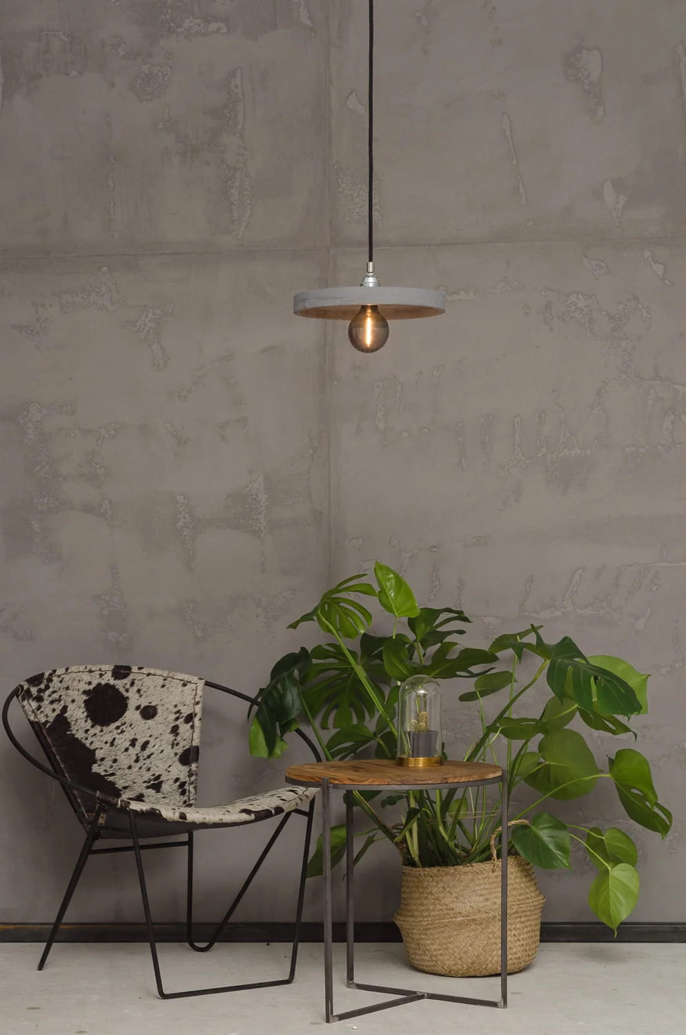 Nowoczesna lampa wisząca z kloszem ręcznie wykonanym z betonu.
