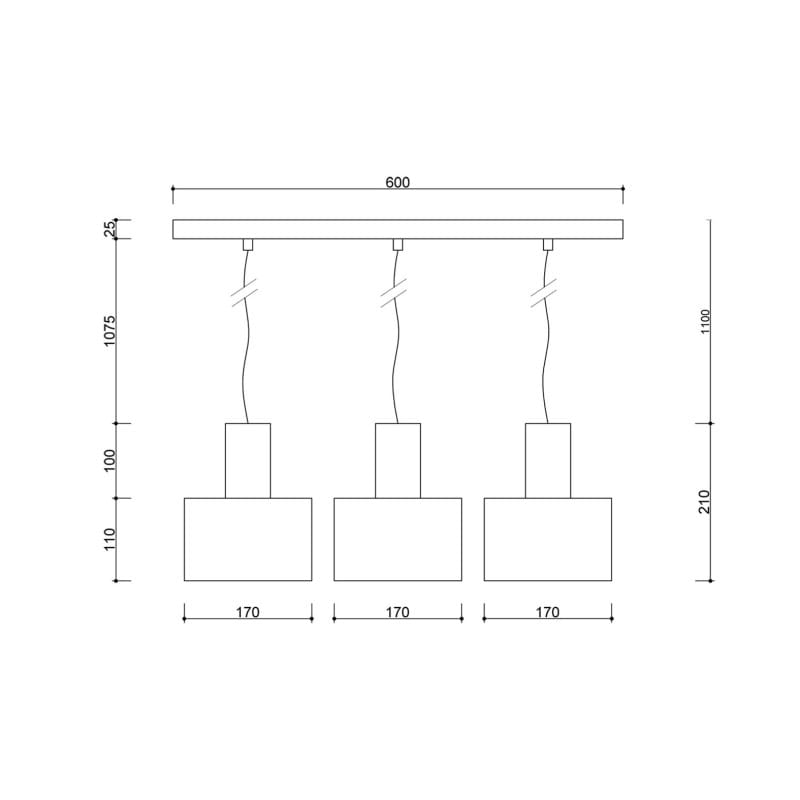 • sufitowa lampa wisząca • długość 131cm • szerokość 60cm • trzy metalowe klosze i listwa sufitowa lakierowane w kolorze czarnym lub białym strukturalnym • oplot w kolorze czarnym lub białym • przewód dwużyłowy 2 X 0.75mm2 • w zestawie nie ma żarówki • max. 15W