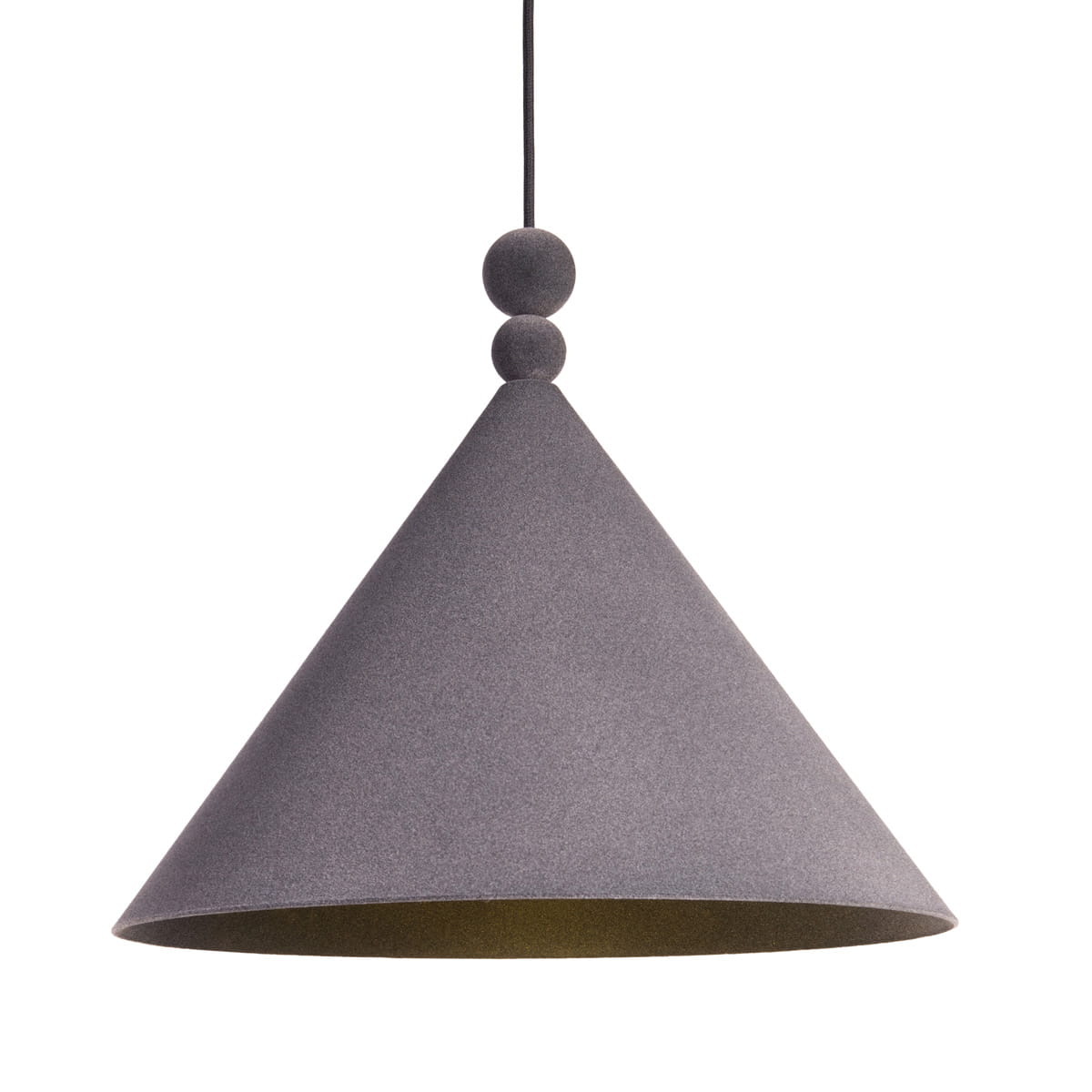 Stylowa lampa wisząca w całości pokryta przyjemnym, aksamitnym zamszem w pięciu kolorach do wyboru.