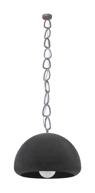 Klosz lampy Porchia jest dostępny w 5 różnych kolorach z kolekcji Velvet, a dekoracyjny łańcuch można spersonalizować, wybierając 2 kolory z serii Anode Effect, które mają delikatne perłowe wykończenie. Ta elastyczność pozwala dostosować lampę do własnych preferencji kolorystycznych i harmonijnie wkomponować ją w charakter wnętrza.