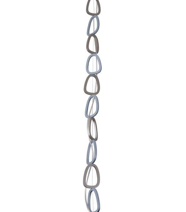 Ozdobny łańcuch może być dopasowany do własnych preferencji, zarówno pod względem jego długości jak i wariantów kolorystycznych. Lampa jest mocowana na płaskiej, aluminiowej podsufitce, starannie pokrytej powłoką proszkową.