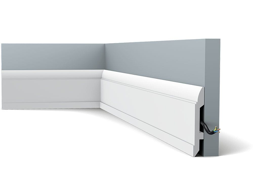 Wysokiej jakości listwa przypodłogowa ozdobna wykonana z twardego, wilgocioodpornego duropolimeru. Zagruntowana i gotowa do malowania.