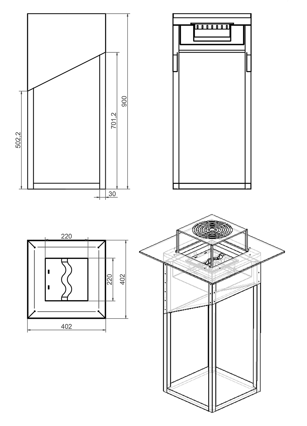 | Wymiary | 402 × 900 × 402 mm (szer. × wys. × gł.) |