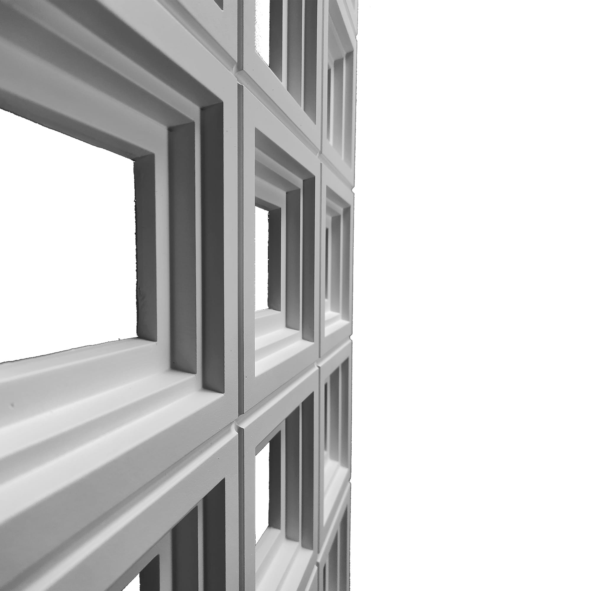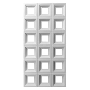 Panel poliuretanowy 3D TEMPLE tworzy siatkę wypukłych kwadratów z wyraźnym, stopniowanym profilem. Każde wgłębienie imituje kaseton – rozwiązanie znane z antycznych świątyń czy wnętrz klasycznych rezydencji.