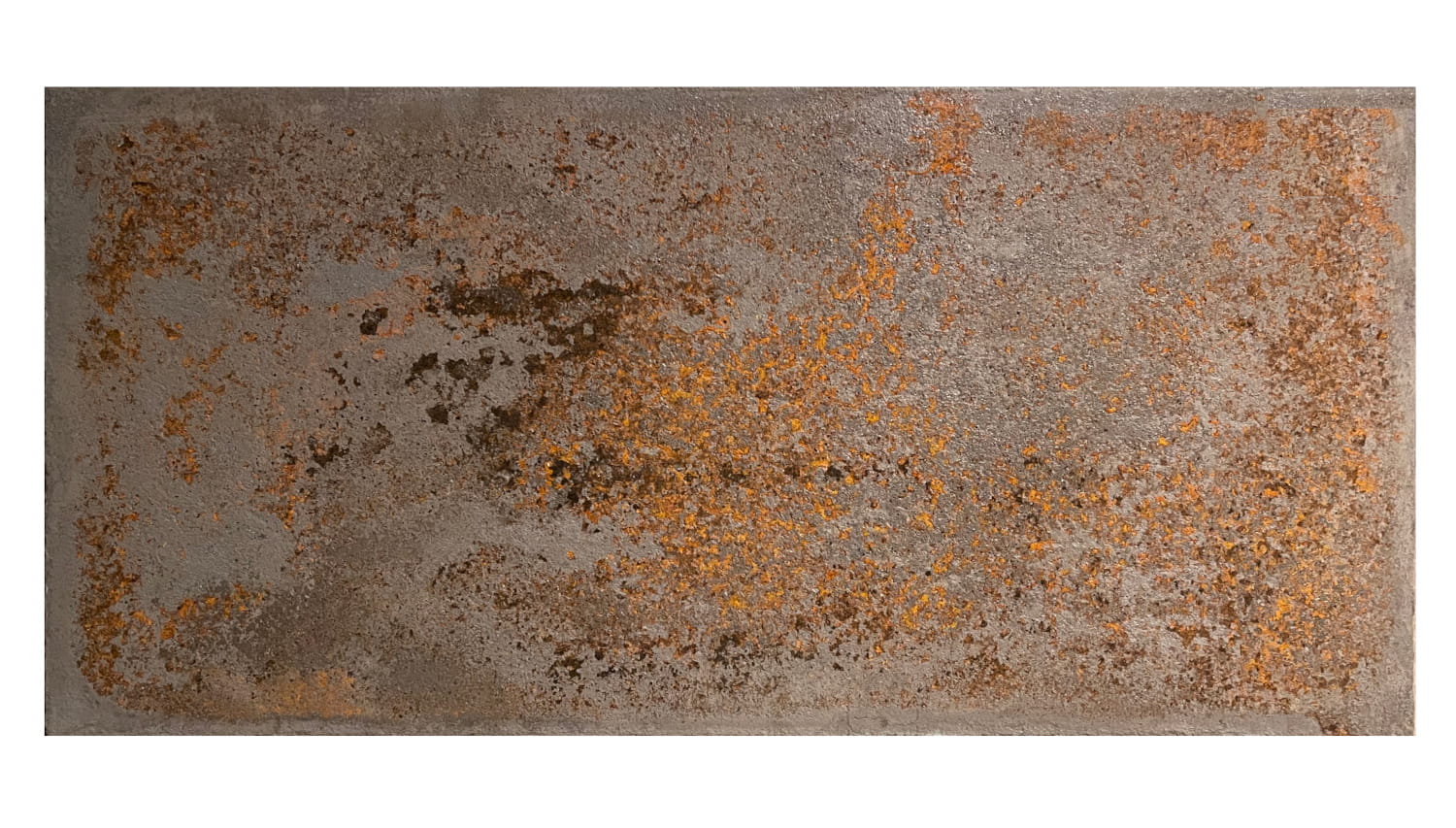 Powierzchnia płyt wzbogacona jest o dekoracyjny efekt prawdziwej rdzy inspirowanej stalą corten. Naturalny proces tworzenia struktury powoduje, że rozmieszczenie oraz intensywność rdzy na każdej płycie jest inne. Dzięki temu powstaje autentyczna, niepowtarzalna kompozycja, której nie da się osiągnąć przy użyciu nadruków czy imitacji.