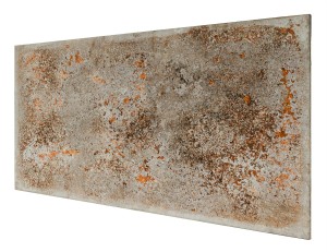 Powierzchnia płyt wzbogacona jest o dekoracyjny efekt prawdziwej rdzy inspirowanej stalą corten. Naturalny proces tworzenia struktury powoduje, że rozmieszczenie oraz intensywność rdzy na każdej płycie jest inne. Dzięki temu powstaje autentyczna, niepowtarzalna kompozycja, której nie da się osiągnąć przy użyciu nadruków czy imitacji.
