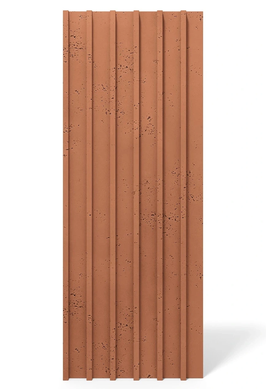 Niezwykle efektowny panel ścienny z pionowymi lamelami, wykonany z najwyżej klasy betonu architektonicznego.