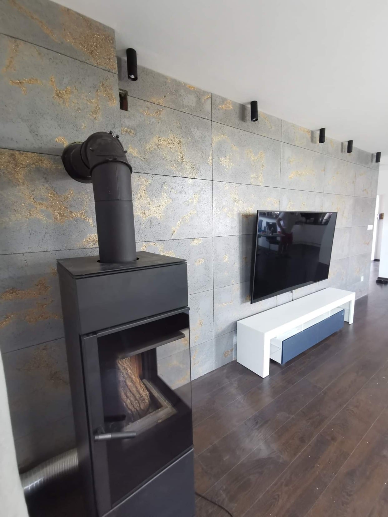 120x60x1 cm | Ciemny popiel kruszywo złote | Płyta betonowa ultralekka beton architektoniczny