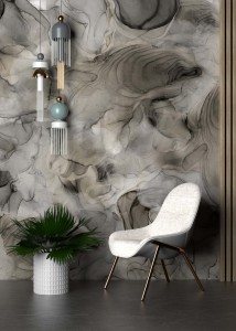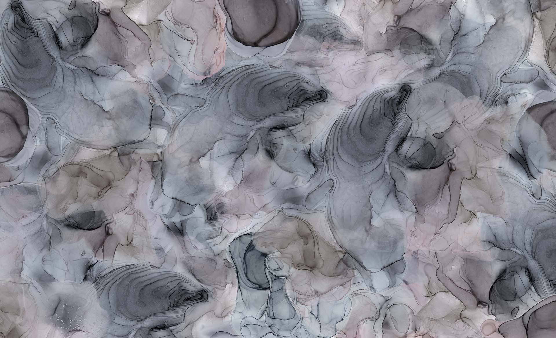 Wzór powstał przy łączeniu ręcznie malowanych tuszami alkoholowymi abstrakcyjnych form.