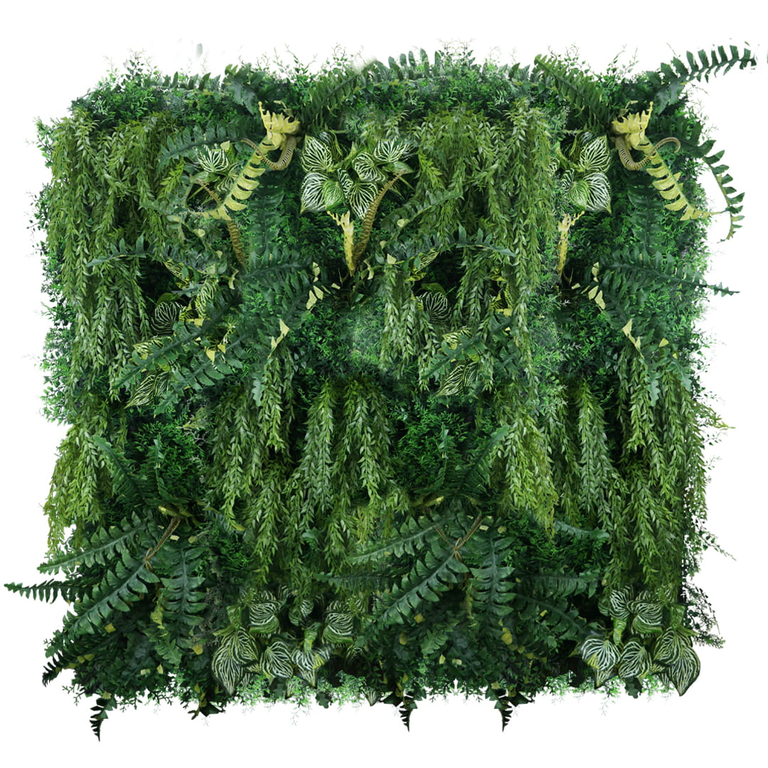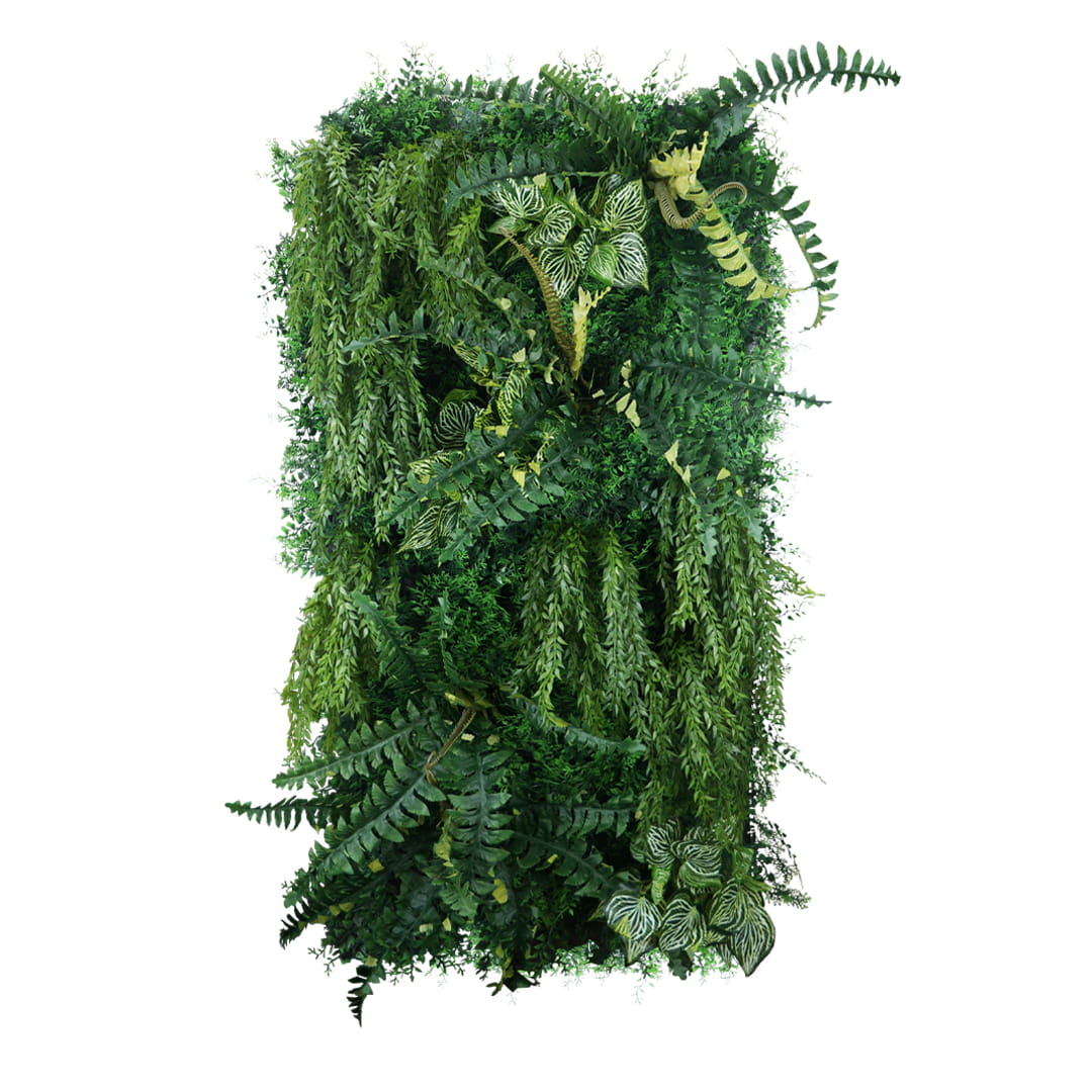 Panele ze sztucznych roślin składają się z wysokiej jakości elementów sztucznych roślin, które tworzą spójną, zieloną ścianę. Wykonywane są w postaci pojedynczych paneli o wymiarze 50x100 cm lub na zamówienie na dowolny wymiar. Nie ma ograniczeń co do rozmiarów ogrodu wertykalnego. Każdy panel jest niepowtarzalny i ma swoje określone miejsce w kompozycji na którą składa się zielona ściana.